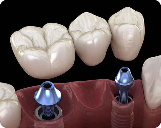 Bridge the gap of 2+ missing teeth in a row with implant-supported teeth that preserve your jawbone and don't damage neighboring teeth.