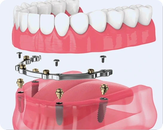 Replace all your teeth with a complete set of permanent implant-supported teeth using our All-on-4, All-on-6, or custom protocols.